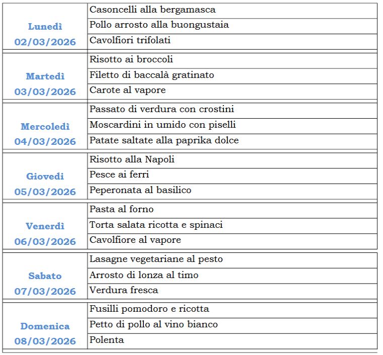 Ogni pasto costa € 5.50 (dal 1/1/2026), generalmente si paga settimanalmente.