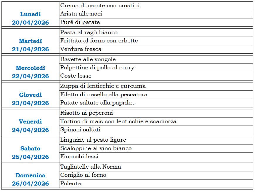 Menù della settimana 17 del 2026